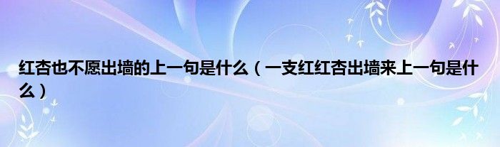 大家好,小科来为大家解答以上问题。红杏也不愿出墙的上一句是什么,一支红红杏出墙来上一句是什么很多人还不知道,现在让我们一起来看看吧!
