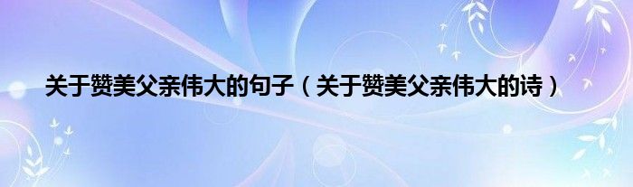 大家好,小科来为大家解答以上问题。关于赞美父亲伟大的句子,关于赞美父亲伟大的诗很多人还不知道,现在让我们一起来看看吧!