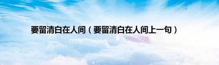 大家好,小科来为大家解答以上问题。要留清白在人间,要留清白在人间上一句很多人还不知道,现在让我们一起来看看吧!