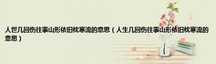 大家好,小科来为大家解答以上问题。人世几回伤往事山形依旧枕寒流的意思,人生几回伤往事山形依旧枕寒流的意思很多人还不知道,现在让我们一起来看看吧!