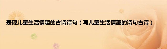 大家好,小科来为大家解答以上问题。表现儿童生活情趣的古诗诗句,写儿童生活情趣的诗句古诗很多人还不知道,现在让我们一起来看看吧!