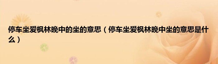 大家好,小科来为大家解答以上问题。停车坐爱枫林晚中的坐的意思,停车坐爱枫林晚中坐的意思是什么很多人还不知道,现在让我们一起来看看吧!