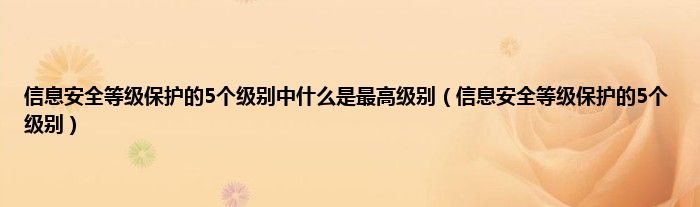 大家好,小科来为大家解答以上问题。信息安全等级保护的5个级别中什么是最高级别,信息安全等级保护的5个级别很多人还不知道,现在让我们一起来看看吧!