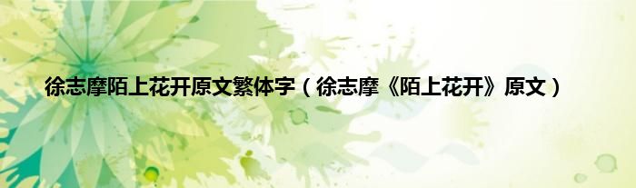 大家好,小科来为大家解答以上问题。徐志摩陌上花开原文繁体字,徐志摩《陌上花开》原文很多人还不知道,现在让我们一起来看看吧!