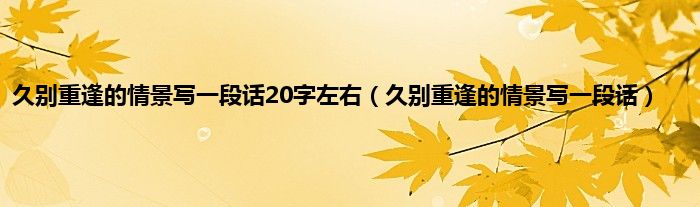 大家好,小科来为大家解答以上问题。久别重逢的情景写一段话20字左右,久别重逢的情景写一段话很多人还不知道,现在让我们一起来看看吧!