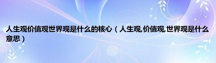 大家好,小科来为大家解答以上问题。人生观价值观世界观是什么的核心,人生观,价值观,世界观是什么意思很多人还不知道,现在让我们一起来看看吧!