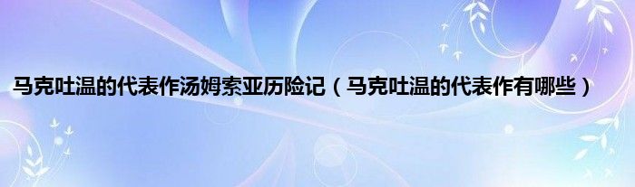 大家好,小科来为大家解答以上问题。马克吐温的代表作汤姆索亚历险记,马克吐温的代表作有哪些很多人还不知道,现在让我们一起来看看吧!
