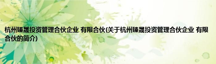 本文关于杭州臻晟投资管理合伙企业 有限合伙的简介就讲解完毕,希望对大家有所帮助。