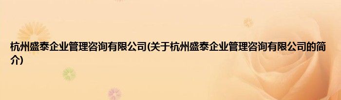 本文关于杭州盛泰企业管理咨询有限公司的简介就讲解完毕,希望对大家有所帮助。