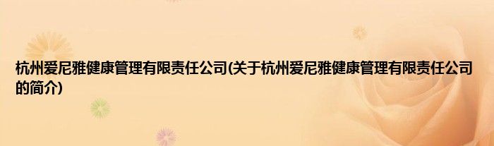 大家好,杭州爱尼雅健康管理有限责任公司,关于杭州爱尼雅健康管理有限责任公司的简介很多人还不知道,现在让我们一起来看看吧!