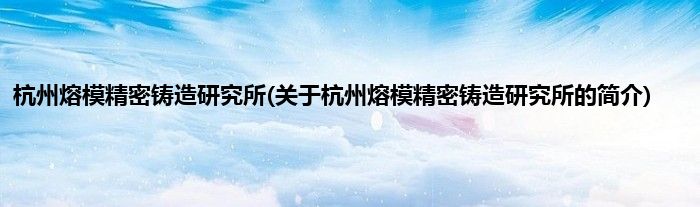 本文关于杭州熔模精密铸造研究所的简介就讲解完毕,希望对大家有所帮助。