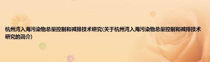 本文关于杭州湾入海污染物总量控制和减排技术研究的简介就讲解完毕,希望对大家有所帮助。