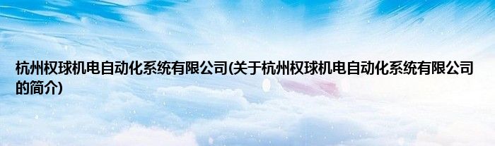 本文关于杭州权球机电自动化系统有限公司的简介就讲解完毕,希望对大家有所帮助。