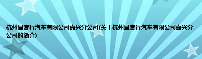 本文关于杭州星睿行汽车有限公司嘉兴分公司的简介就讲解完毕,希望对大家有所帮助。