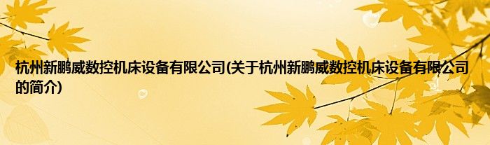本文关于杭州新鹏威数控机床设备有限公司的简介就讲解完毕,希望对大家有所帮助。