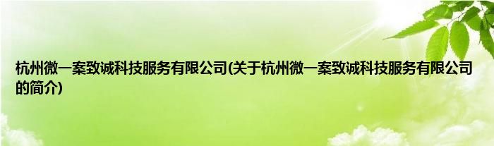 本文关于杭州微一案致诚科技服务有限公司的简介就讲解完毕,希望对大家有所帮助。