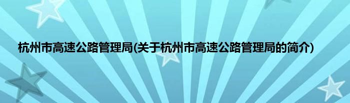 本文关于杭州市高速公路管理局的简介就讲解完毕,希望对大家有所帮助。