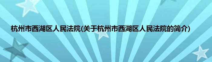 杭州市西湖区人民法院(关于杭州市西湖区人民法院的简介)