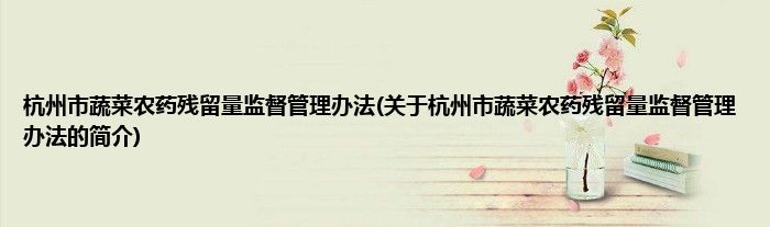 杭州市蔬菜农药残留量监督管理办法(关于杭州市蔬菜农药残留量监督管理办法的简介)