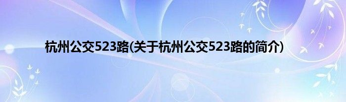 本文关于杭州公交523路的简介就讲解完毕,希望对大家有所帮助。
