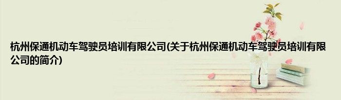 本文关于杭州保通机动车驾驶员培训有限公司的简介就讲解完毕,希望对大家有所帮助。
