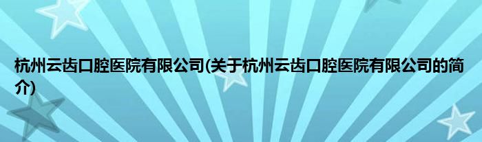 本文关于杭州云齿口腔医院有限公司的简介就讲解完毕,希望对大家有所帮助。