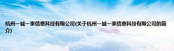 本文关于杭州一城一家信息科技有限公司的简介就讲解完毕,希望对大家有所帮助。