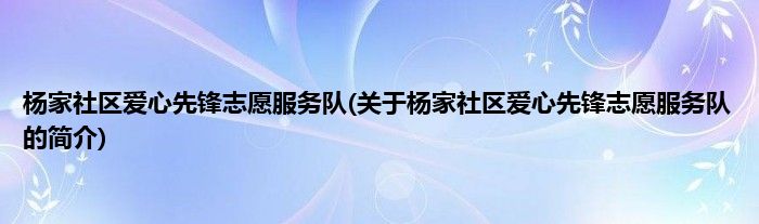 本文关于杨家社区爱心先锋志愿服务队的简介就讲解完毕,希望对大家有所帮助。