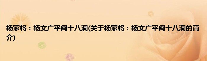 本文关于杨家将:杨文广平闽十八洞的简介就讲解完毕,希望对大家有所帮助。