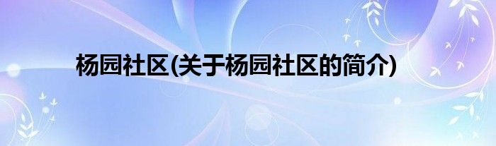 大家好,杨园社区,关于杨园社区的简介很多人还不知道,现在让我们一起来看看吧!