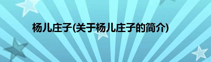 大家好,杨儿庄子,关于杨儿庄子的简介很多人还不知道,现在让我们一起来看看吧!
