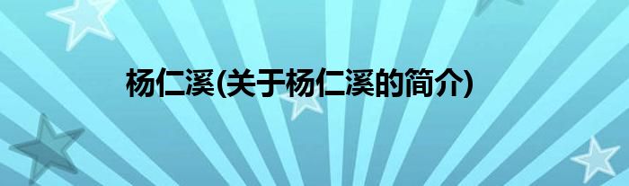 大家好,杨仁溪,关于杨仁溪的简介很多人还不知道,现在让我们一起来看看吧!