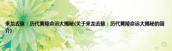 大家好,来龙去脉:历代黄陵命运大揭秘,关于来龙去脉:历代黄陵命运大揭秘的简介很多人还不知道,现在让我们一起来看看吧!