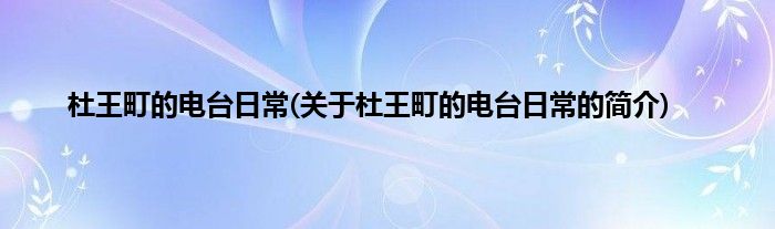本文关于杜王町的电台日常的简介就讲解完毕,希望对大家有所帮助。