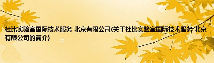 本文关于杜比实验室国际技术服务 北京有限公司的简介就讲解完毕,希望对大家有所帮助。