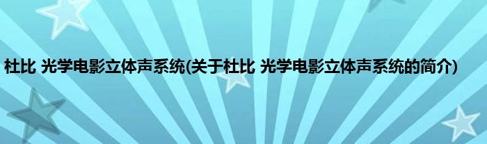 本文关于杜比 光学电影立体声系统的简介就讲解完毕,希望对大家有所帮助。