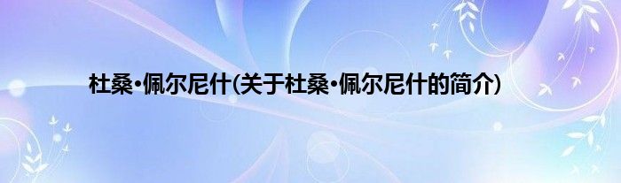 本文关于杜桑·佩尔尼什的简介就讲解完毕,希望对大家有所帮助。