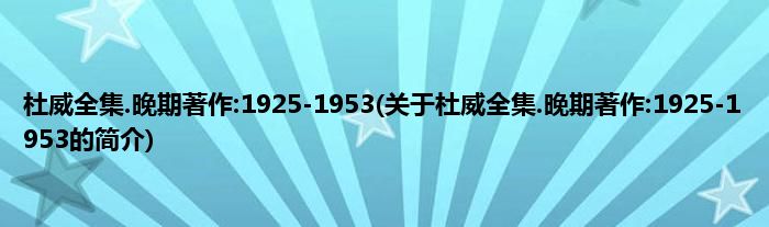 大家好,杜威全集.晚期著作:1925-1953,关于杜威全集.晚期著作:1925-1953的简介很多人还不知道,现在让我们一起来看看吧!