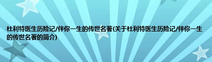 本文关于杜利特医生历险记/伴你一生的传世名著的简介就讲解完毕,希望对大家有所帮助。