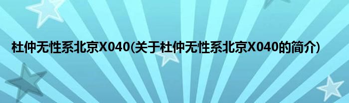 本文关于杜仲无性系北京X040的简介就讲解完毕,希望对大家有所帮助。