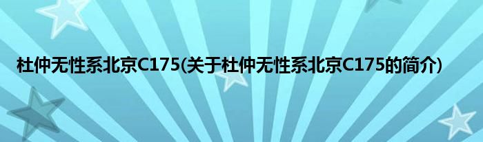 本文关于杜仲无性系北京C175的简介就讲解完毕,希望对大家有所帮助。