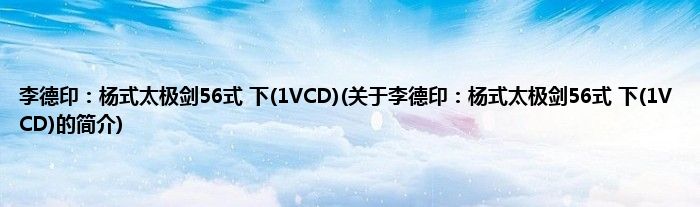 本文关于李德印:杨式太极剑56式 下(1VCD)的简介就讲解完毕,希望对大家有所帮助。