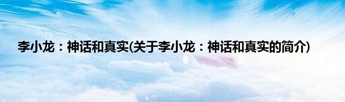 本文关于李小龙:神话和真实的简介就讲解完毕,希望对大家有所帮助。