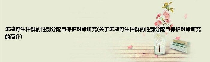 本文关于朱鹮野生种群的性别分配与保护对策研究的简介就讲解完毕,希望对大家有所帮助。