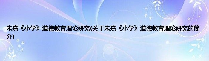 本文关于朱熹《小学》道德教育理论研究的简介就讲解完毕,希望对大家有所帮助。