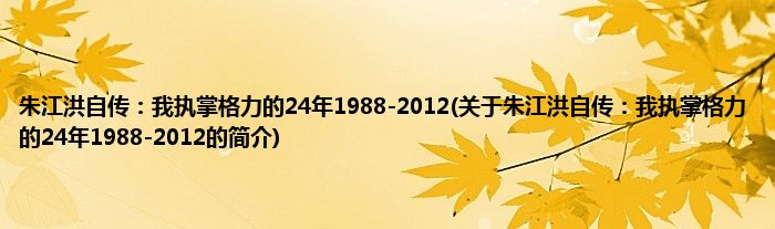 本文关于朱江洪自传:我执掌格力的24年1988-2012的简介就讲解完毕,希望对大家有所帮助。