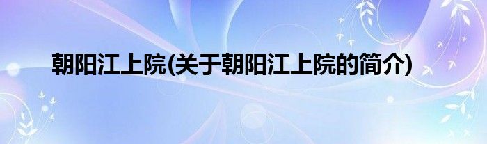 朝阳江上院(关于朝阳江上院的简介)
