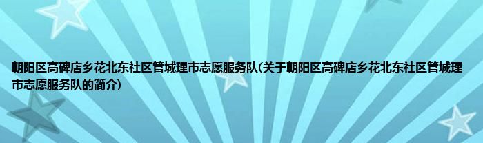 朝阳区高碑店乡花北东社区管城理市志愿服务队(关于朝阳区高碑店乡花北东社区管城理市志愿服务队的简介)