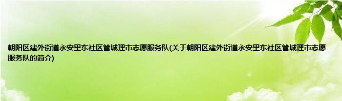 朝阳区建外街道永安里东社区管城理市志愿服务队(关于朝阳区建外街道永安里东社区管城理市志愿服务队的简介)