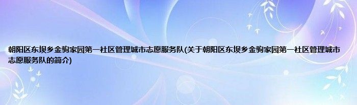 1、 朝阳区东坝乡金驹家园第一社区管理城市志愿服务队是由朝阳区东坝乡管城理市志愿服务队领导下的志愿团体。